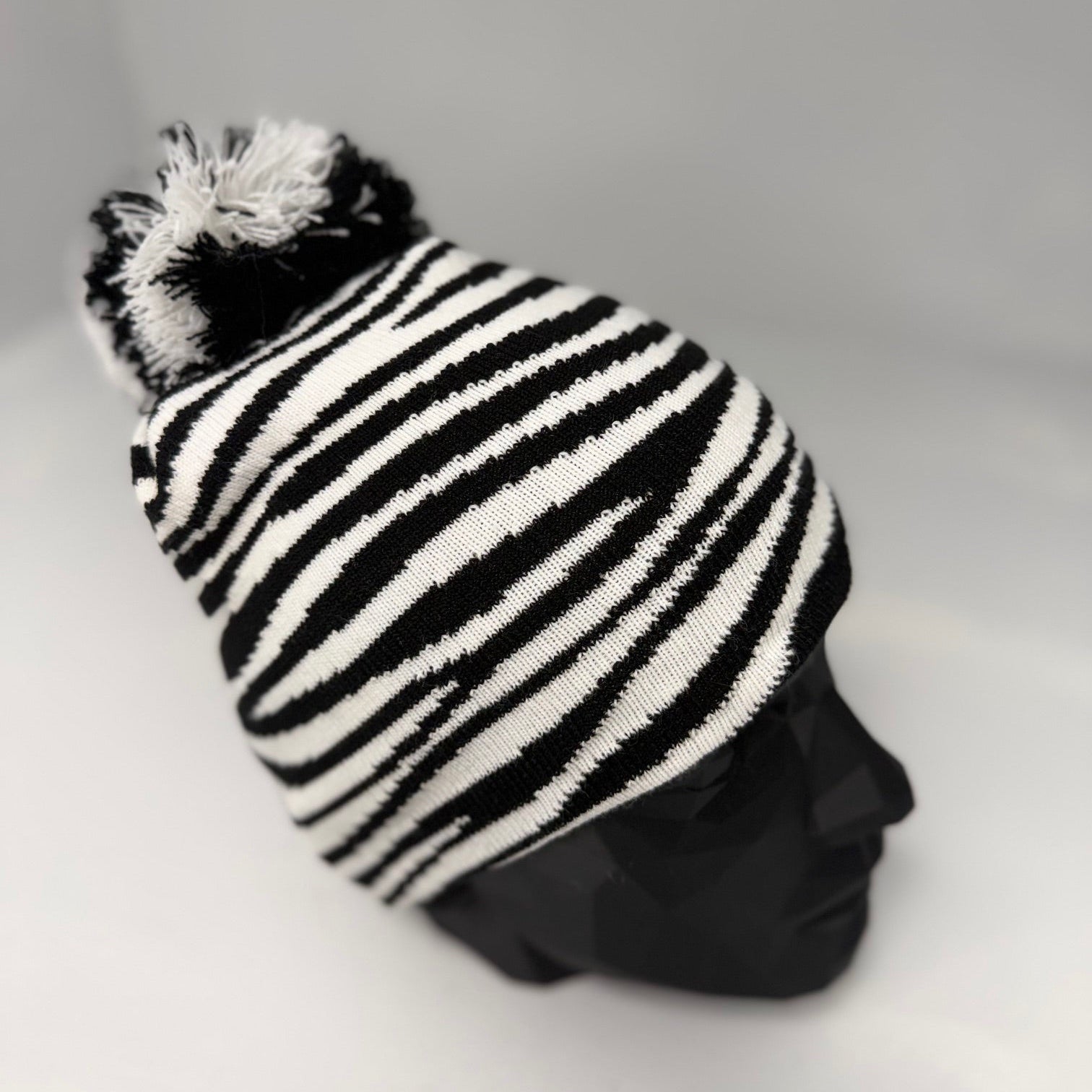 Embrace your wild side with this hand-crafted beanie featuring bold striped patterns that turn heads wherever you go. Each piece is individually knitted—never mass-produced—ensuring you own something truly one-of-a-kind. The vibrant design delivers warmth and personality for every adventure, from city streets to mountain trails. That eye-catching striped pom? It's the perfect finishing touch that makes this beanie impossible to ignore.